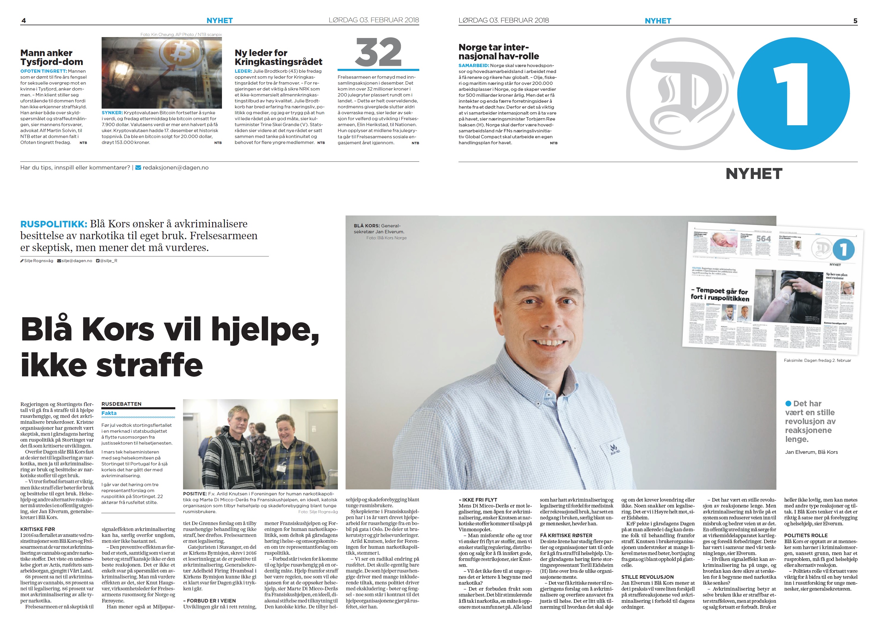 Dagen 03. februar 2018. Blå Kors vil hjelpe, ikke straffe.