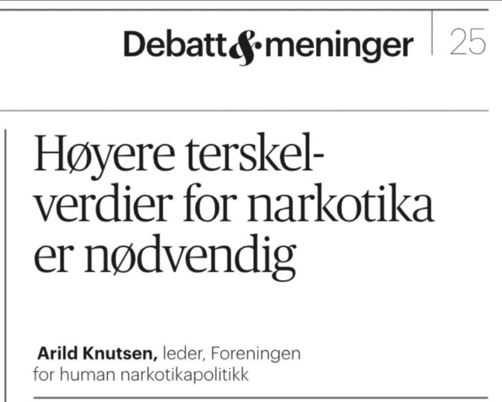 Debattinnlegg i Aftenposten 20. januar 2020: Høye terskelverdier nødvendig av Arild Knutsen, leder i Foreningen for human narkotikapolitikk.