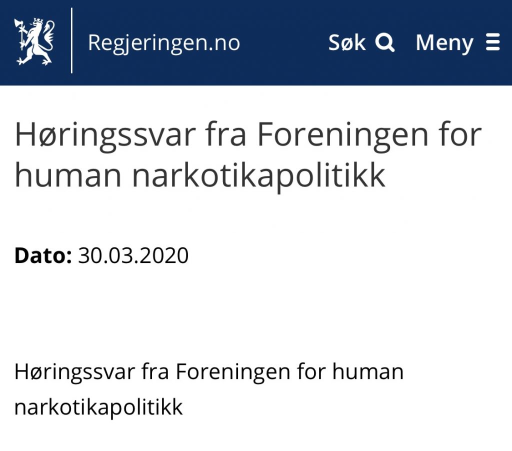 Høringssvar fra Foreningen for human narkotikapolitikk